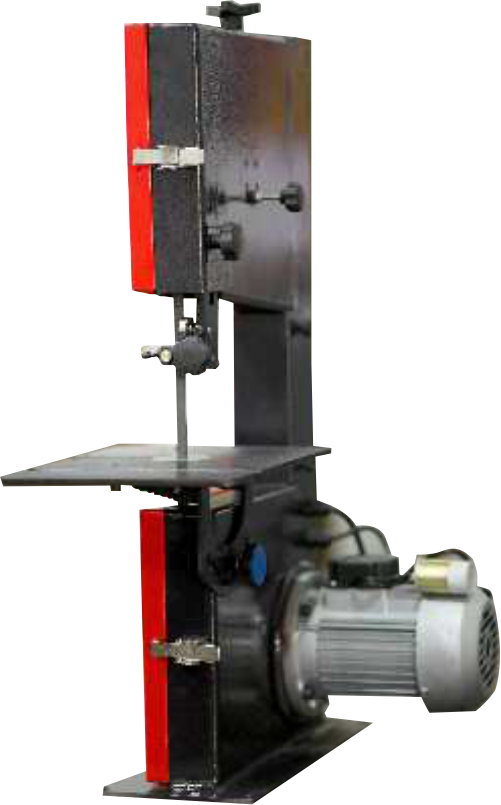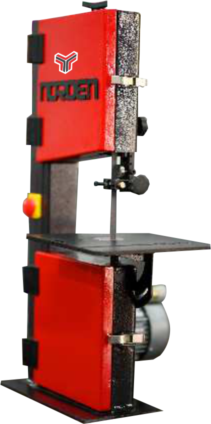 A vertical bandsaw, like the Norden model shown, is a machine featuring a continuous loop of a saw blade (or band) with teeth along one edge, which runs vertically over two or more wheels. It is commonly used in woodworking, metalworking, and general fabrication for making precise cuts, including straight lines, curves, and complex shapes.